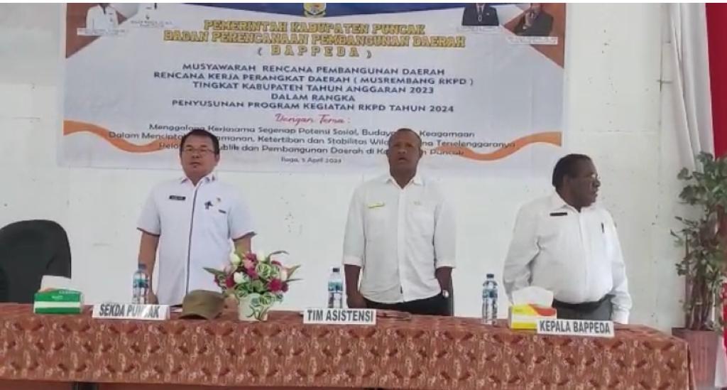 PAPUAInside.id, ILAGA—Pemda Kabupaten Puncak melalui Bappeda menggelar Musrenbang RKPD (Musyawarah Rencana Pembangunan Daerah Rencana Kerja Perangkat Daerah) berlangsung di Ilaga, Rabu (05/04/2023).