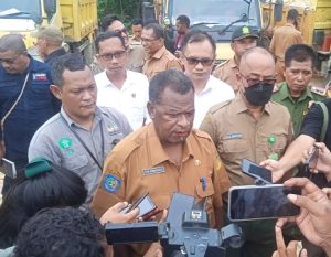Kepala Dinas Kehutan dan Lingkungan Hidup Papua, Yan Jap Ormuseray, menyampaikan keterangan pers ketika kasus perusakan hutan bakau di kawasan konservasi Taman Wisata Alam (TWN) Teluk Youtefa, Kota Jayapura. (Foto: Dok/AJI Jayapura)