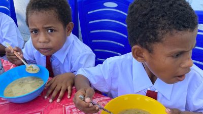 Siswa-siswi Papua Shine School Koya Koso menikmati sarapan bersama. (Foto: Dok/Papua Shine School Koya Koso)
