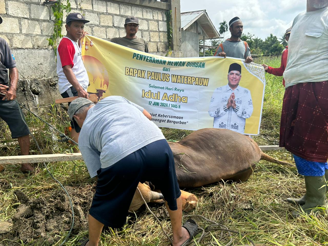Umat Muslim di Distrik Bonggo Kabupaten Jayapura juga menerima bantuan sapi qurban dari Paulus Waterpauw. (foto: Relawan PW)