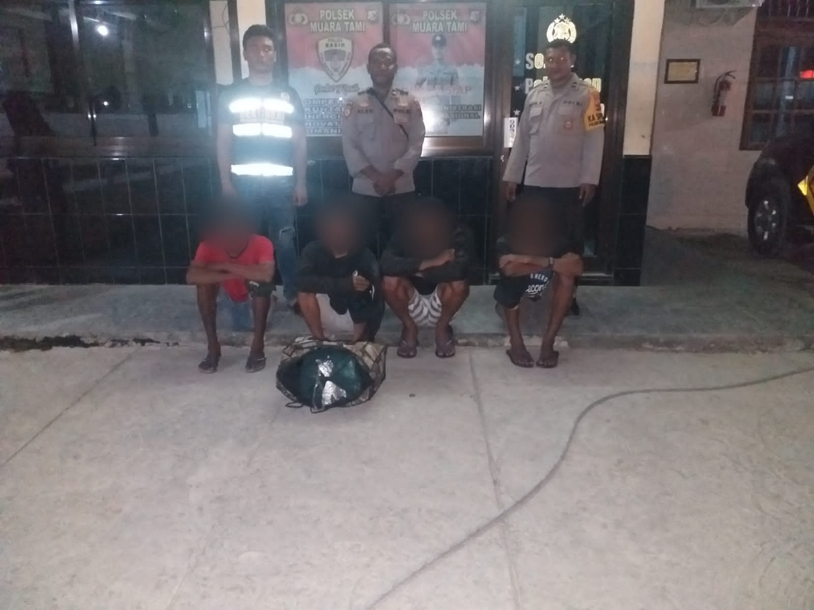 Lebih lanjut, kata Ipda Alex, disela-sela pelaksanaan razia pihaknya kemudian berhasil mengamankan empat orang terduga pelaku dan satu buah tas warna hijau yang berisikan narkotika jenis ganja.