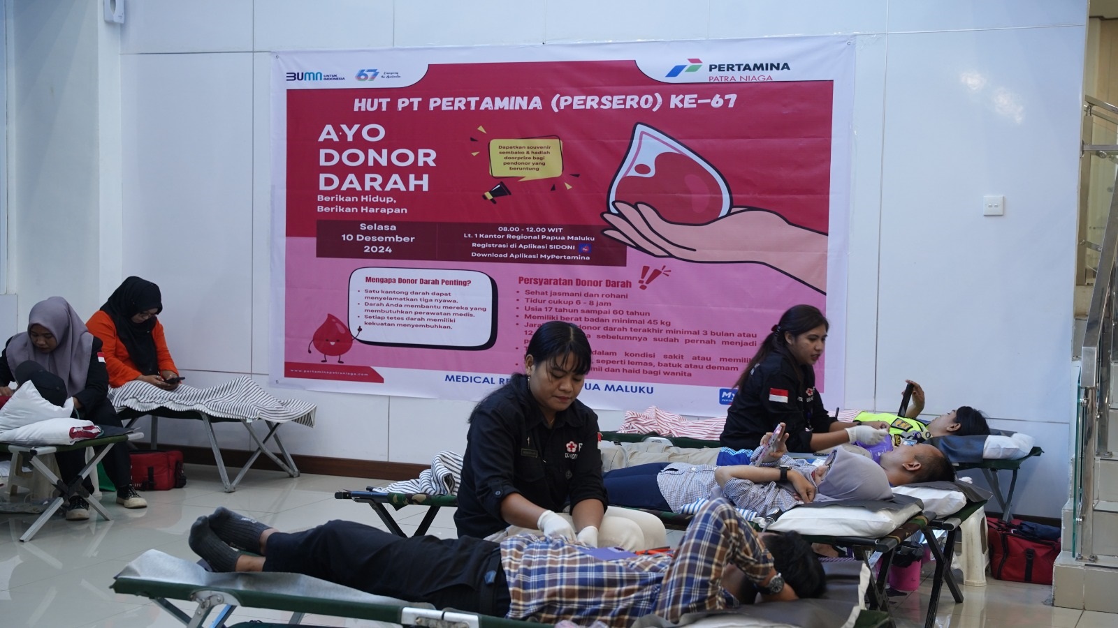 Pertamina Patra Niaga Regional Papua Maluku dan PMI Kota Jayapura, berkolaborasi menggelar aksi donor darah di Kota Jayapura, Selasa (10/12/2024). (Foto: Comm, Rel & CSR Pertamina Patra Niaga Regional Papua Maluku)