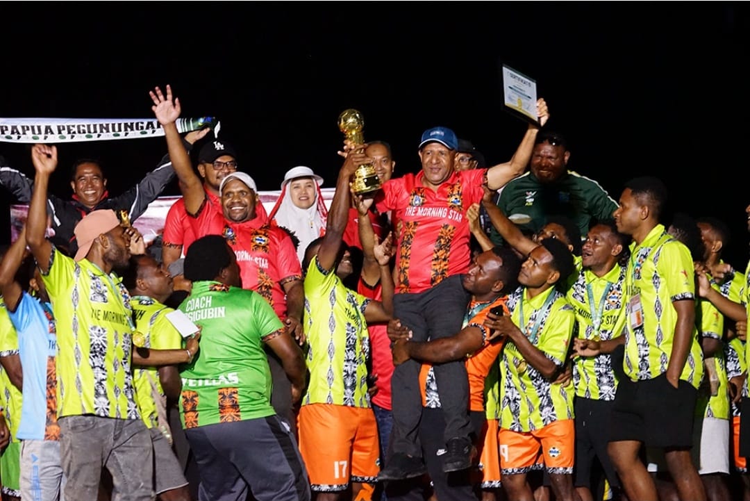 PAPUAINSIDE.ID, WAMENA—HUT-22 Kabupaten Pegunungan Bintang 12 April 2025 sangat istimewa, Persigubin FC tim kebanggan masyarakat memberikan kado terindah yakni tropy juaraLiga IV yang digelar Asprov PSSI Papua Pegunungan. Melalui adu penalti di final melawan Toli FC, Persigubin menang telak 4-2 menjadikannya juara dan tercacat sebagai tim yang tak pernah terkalahkan sepanjang pertandingan, Kamis (03/04/2025) si Stadion Pendidikan Wamena, Jayawijaya.