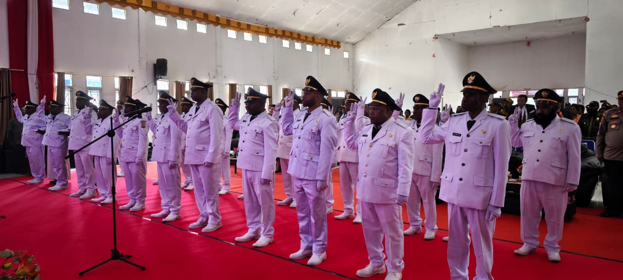 25 Kadistrik se Kabupaten Puncak dilantik Bupati Elvis Tabuni, Selasa (02/12/2025) di Ilaga. (foto: Diskominfo Puncak)