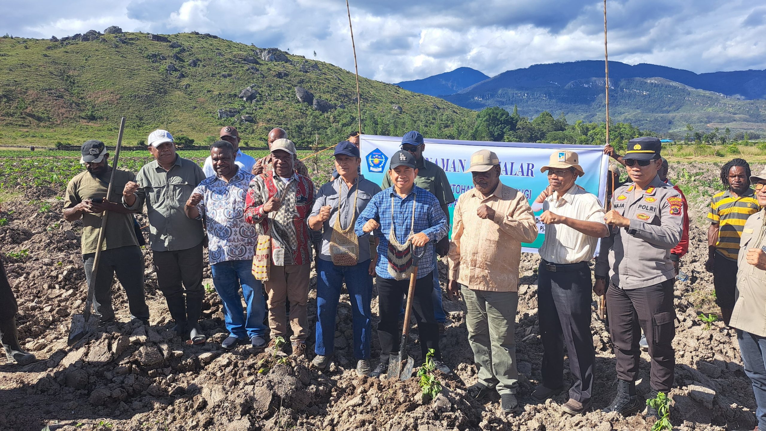 Penanaman perdana padi ini dilakukan langsung Pj Bupati Jayawijaya, Sumule Tumbo, didampingi para asisten, pimpinan OPD dan Forkopimda.