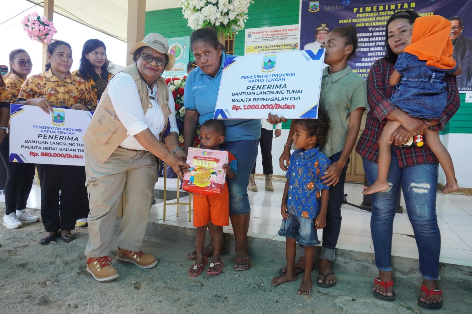 PAPUAInside.id, NABIRE – Pj Gubernur Papua Tengah, Dr. Ribka Haluk, S.Sos., MM melaunching “Gerak Cepat Atasi Stunting” di Provinsi Papua Tengah. Kegiatan launching dibarengi dengan pemberian makanan tambahan bagi anak dibawah umur 2 tahun, ibu hamil dan anak balita, di Puskesmas Wami, Kampung Wami, Distrik Yaur, Kabupaten Nabire, Jumat (6/10/2023).