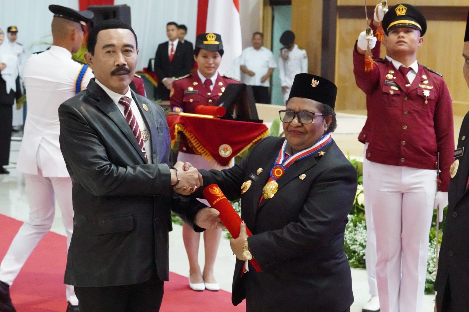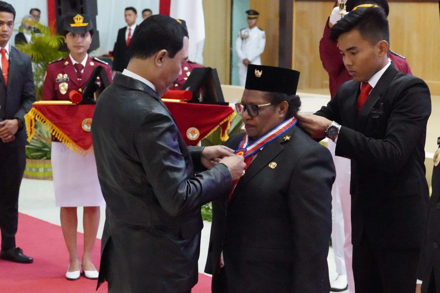 “Beliau adalah srikandi yang berjuang untuk kesejahtraan Papua Tengah dan berkembangnya daerah tersebut. Untuk itulah tanda kehormatan Kartika Pamong Praja Madya dan tanda alumni kita berikan,” pungkasnya.