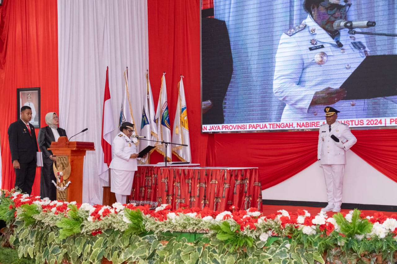 Pelantikan tersebut berdasarkan surat keputusan Menteri Dalam Negeri (Mendagri) Nomor 100.2.1.3-3322 Tahun 2024 tentang pemberhentian dan pengangkatan Penjabat Bupati Intan Jaya, Provinsi Papua Tengah.