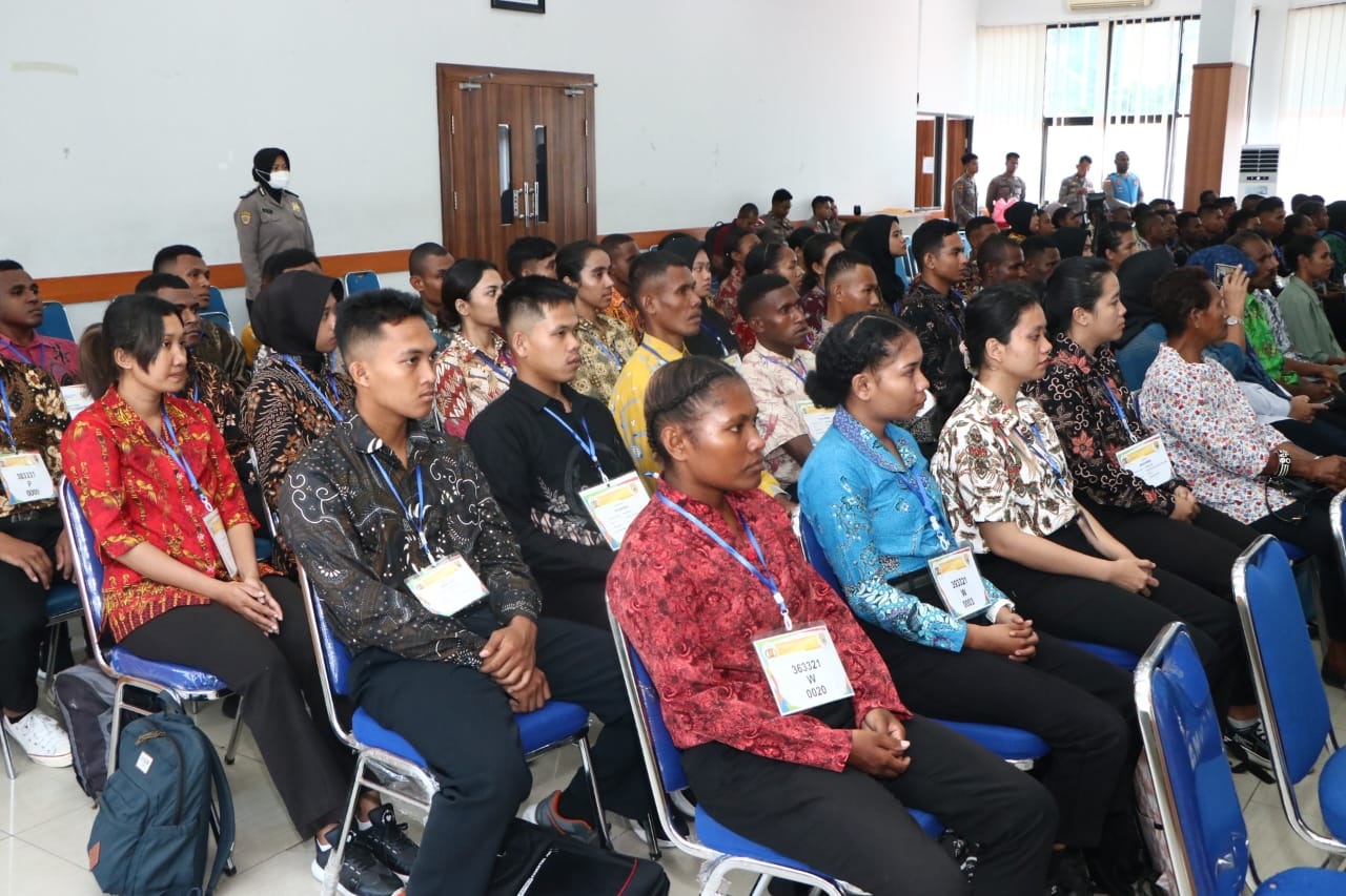 Pengambilan sumpah dan penandatanganan pakta integritas penerimaan Bakomsus Polri TA 2025 dihadiri 80 Casis. (Foto: Humas Polda Papua)