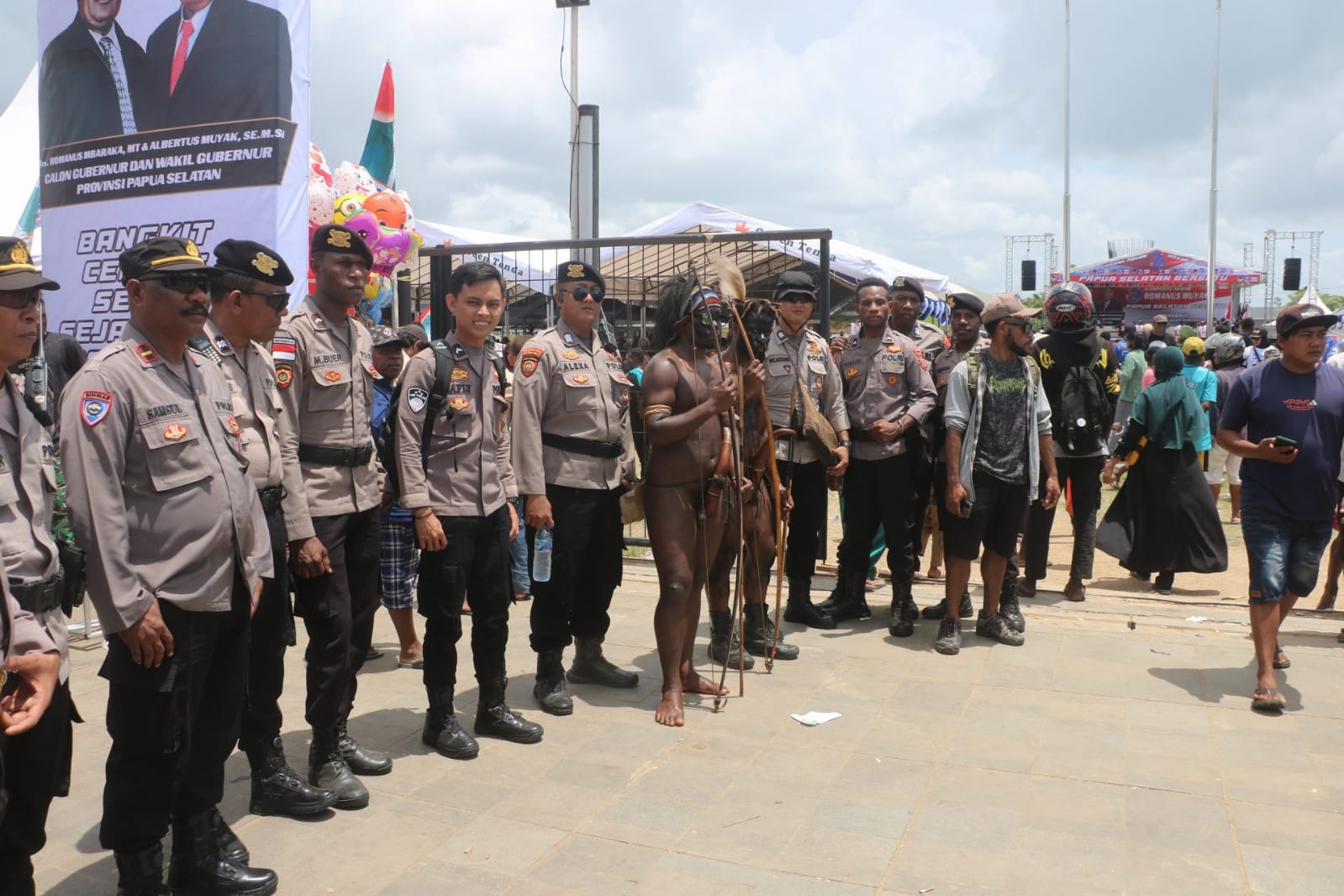 Kasatgas Ops Wil Papua Selatan Operasi Mantap Praja Cartenz 2024 Kombes Pol Sondang RD Siagian mengatakan, sejak pagi, personel telah bersiaga di lokasi melakukan pemeriksaan terhadap area dan peserta yang akan hadir.