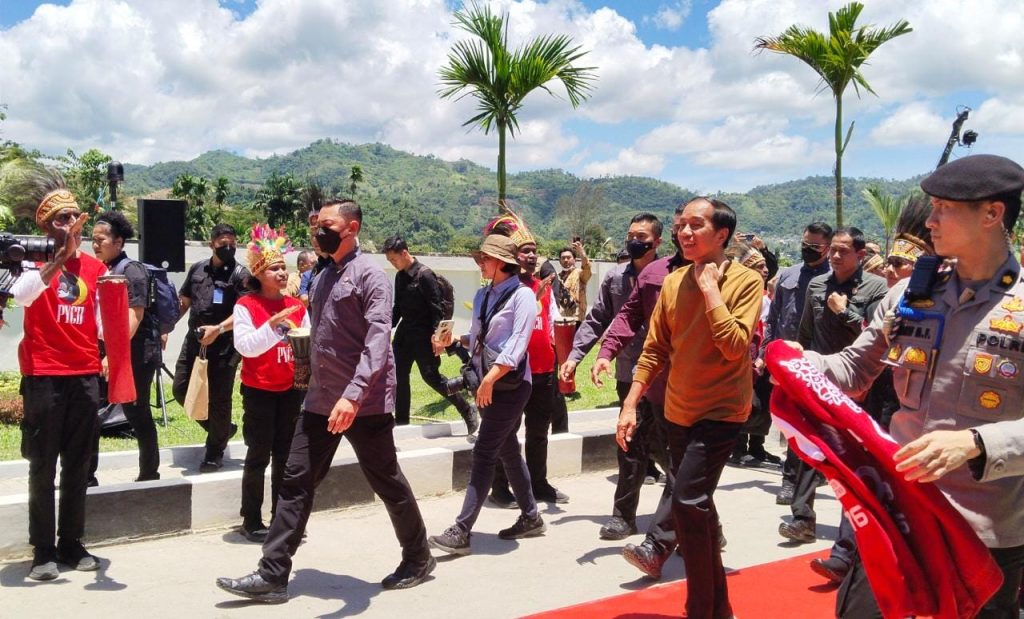 Jokowi tiba di Gedung PYCH pukul 8.30 WIT. Ia disambut dengan pemberian mahkota replika cenderawasih serta diiringi tarian selamat datang.