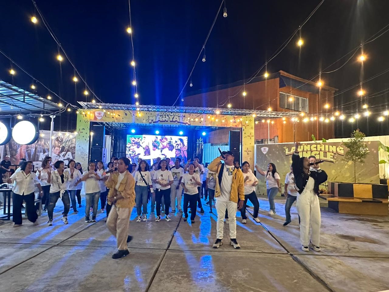 Jingle Kaka Besar Manyala dinyanyikan bersama Papua Group Sunrise 183, Agustin, Aci dan Jo.