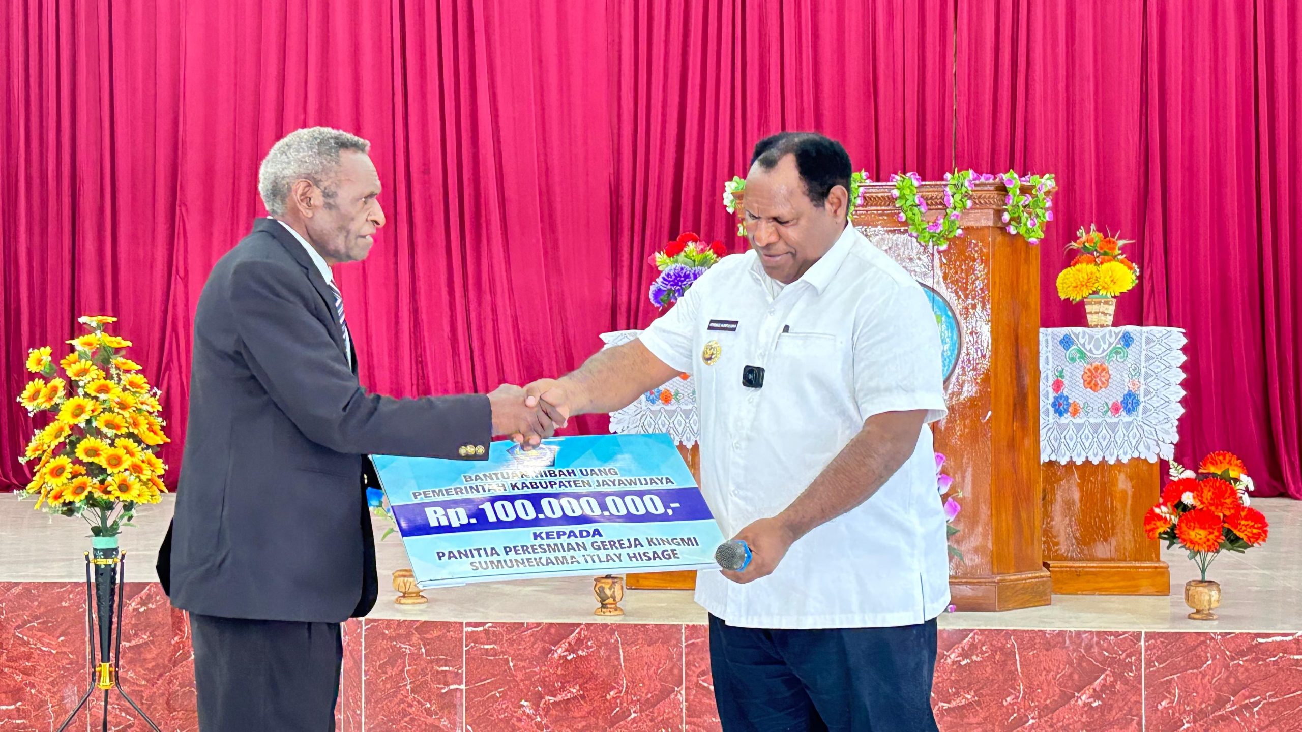 PAPUAinside.id,WAMENA–Pemerintah Daerah (Pemda) Jayawijaya memberikan bantuan hibah senilai Rp 100 juta, sebagai bentuk dukungan terhadap peresmian gedung Gereja Kingmi Sumunekama, Itlay Hisage.