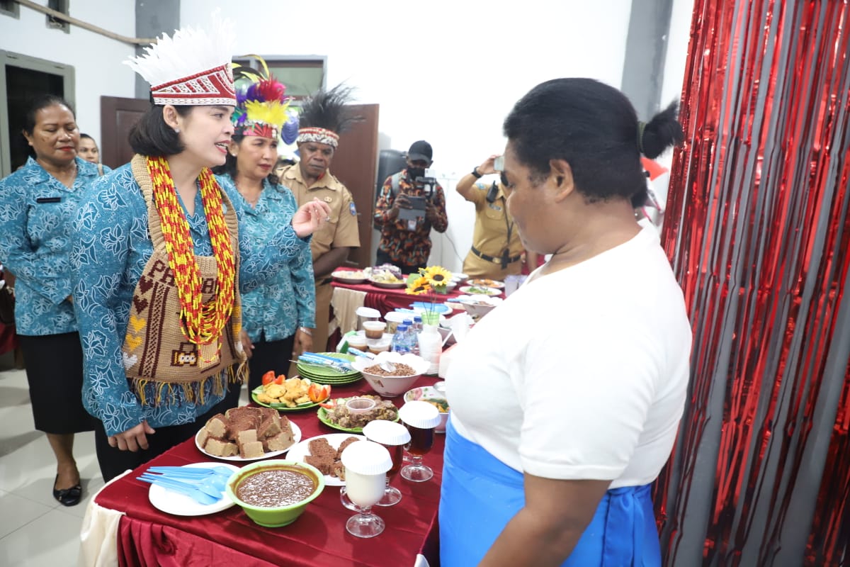 PAPUAInside.id, MANOKWARI—Penjabat Ketua Tim Penggerak PKK Povinsi Papua Barat, Ny. Roma Megawanty, P. S.Kom, M.Si, berkolaborasi dengan TP PKK Kabupaten Manokwari menyelenggarakan lomba cipta menu Beragam, Bergizi, Seimbang dan Aman (B2Sa) yospan dan wayase dalam rangka HUT RI ke-78 tahun, di Manokwari, Selasa (22/08/2023).
