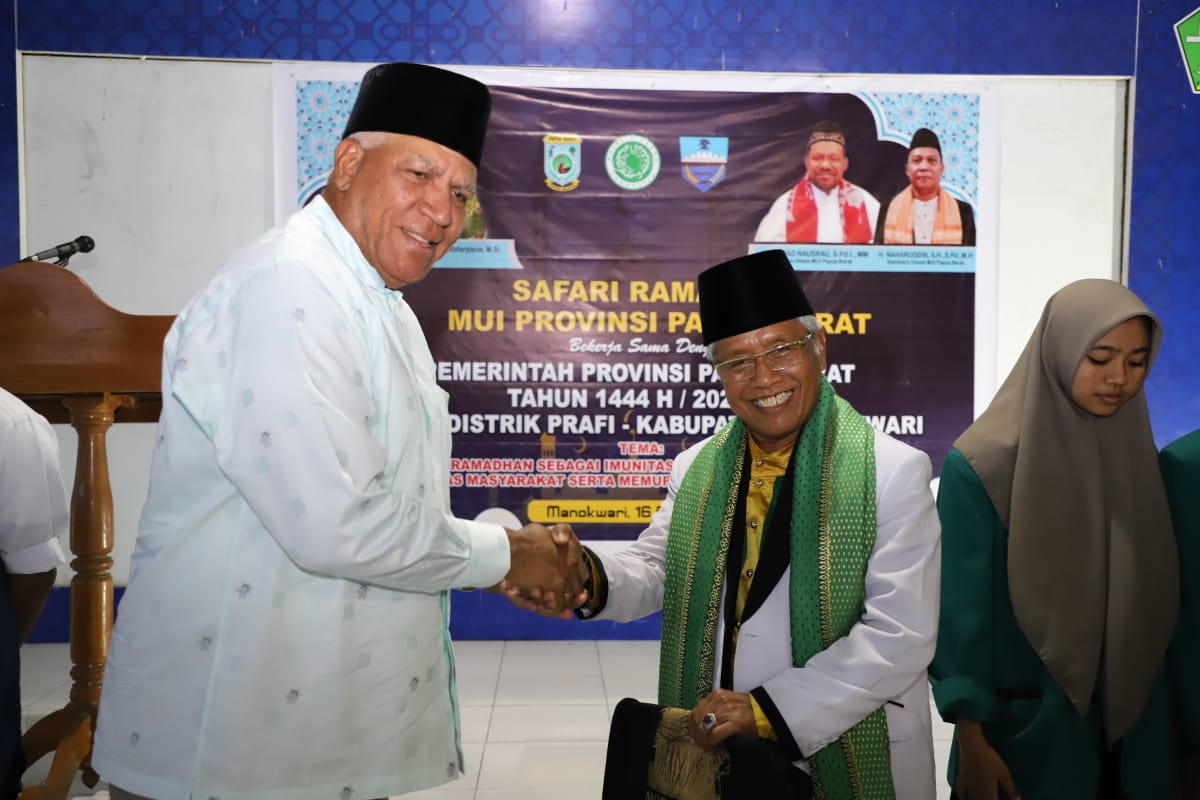 PAPUAInside.id, MANOKWARI— Majelis Ulama Indonesia (MUI) Papua Barat bekerja sama dengan Pemerintah Provinsi Papua Barat menggelar kegiatan safari ramadan di SP 3 Distrik Prafi, Kabupaten Manokawari, Minggu (16/4/1023).