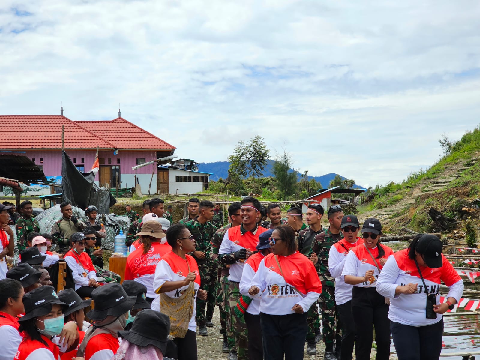 Menari dan bergembira bersama saat pembentangan Bendara Merah Putih Raksasa di Sugapa Intan Jaya. (foto: Satgas Yonif PR 330/Tri Dharma