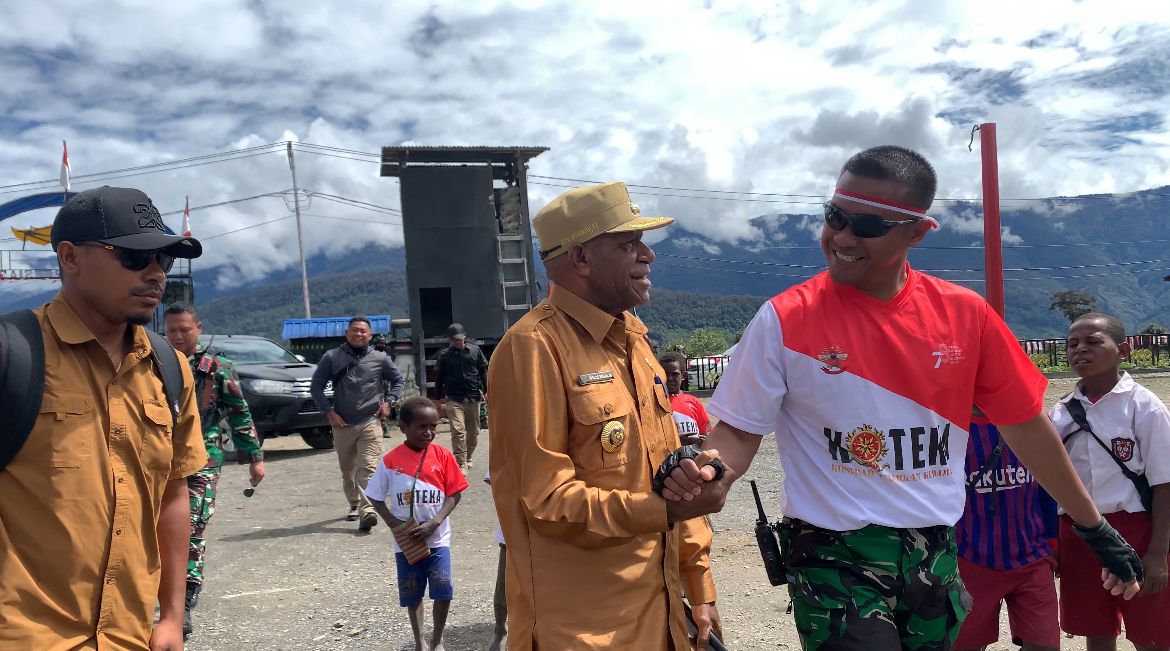 Dansatgas Yonif PR 330, Mayor Inf Dedy Pungky bersama Pj Bupati Apolos Bagau, ST saat kegiatan semarak Merah Putih di Sugapa, Intan Jaya. (foto: Satgas Yonif PR 330/Tri Dharma)