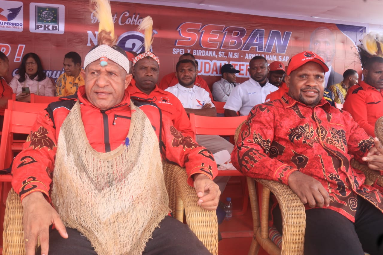 Untuk diketahui, pasangan SEBAN didukung oleh empat partai politik yakni PDI Perjuangan, PERINDO, Partai Kebangkitan Bangsa, dan Partai Garuda. PDI Perjuangan yang pada periode sebelumnya tercatat sebagai partai non seat di DPRD Pegunungan Bintang, pada Pemilihan Legislatif14 Februari 2024 lalu menorehkan sejarah sebagai pemenang dengan meraih 8 kursi. (Tim Media SEBAN)