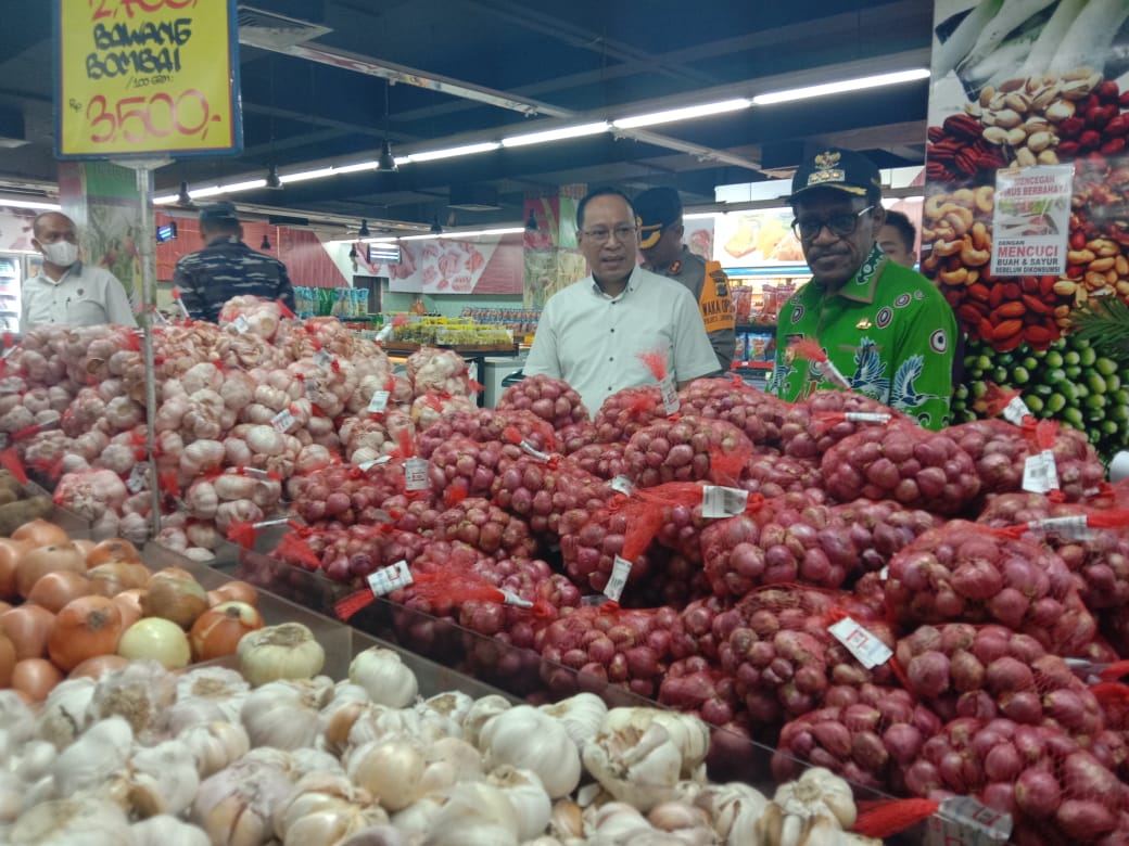 Pj. Walikota Jayapura Frans Pekey saat memantau ketersediaan bahan pangan di Saga Mall Abepura. (Foto : Faisal Narwawan)