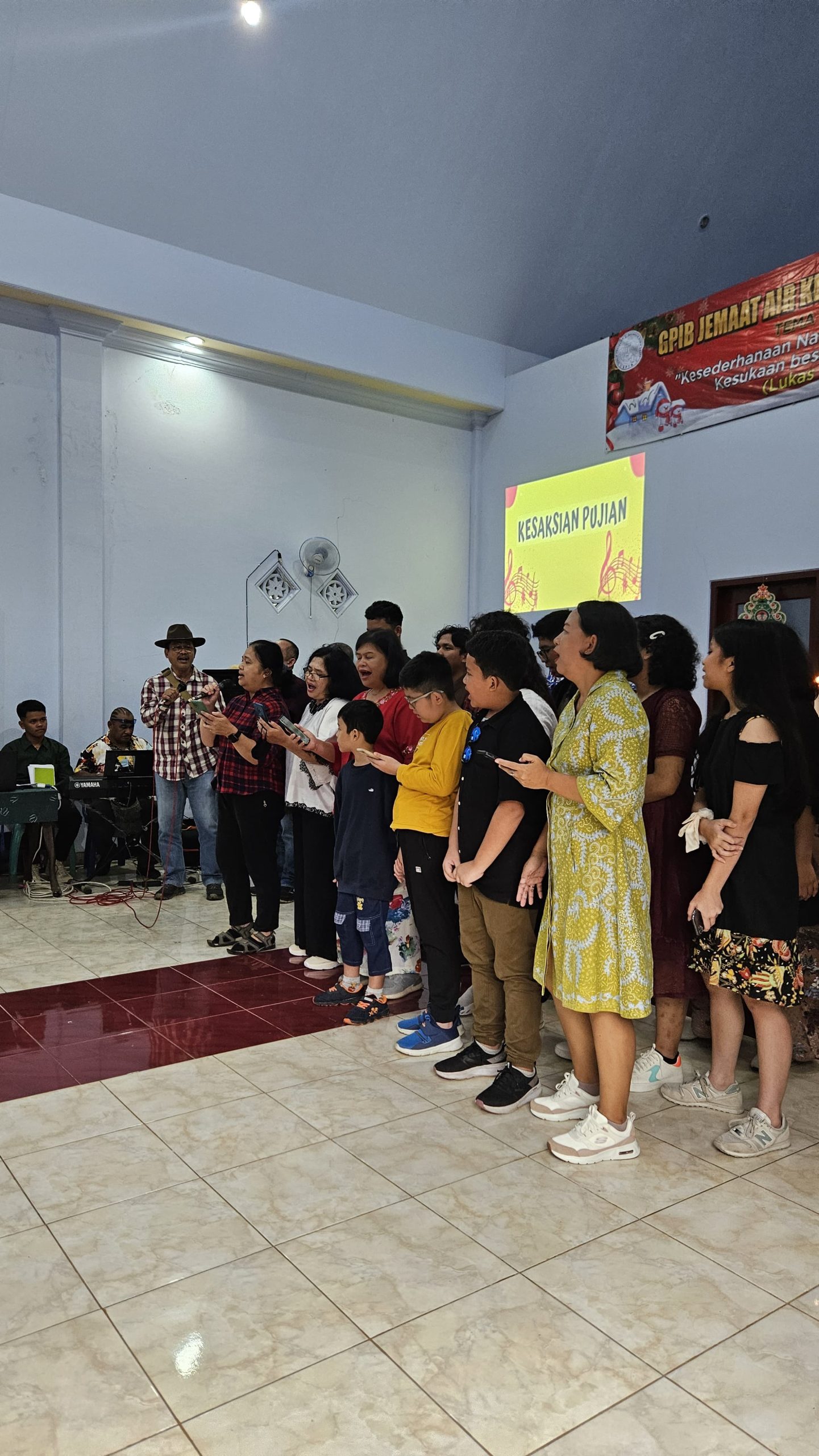 Kakak Besar Paulus Waterpauw bersama Ibu Roma Megawanti di tengah-tengah warga Jemaat GPIB Air Kehidupan Kesamben, Blitar, Jawa Timur.