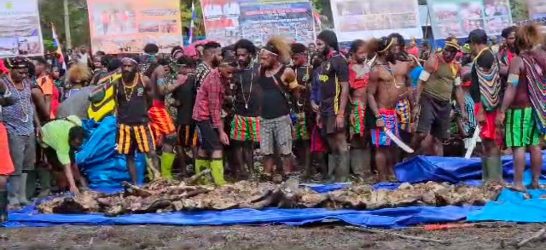 Masyarakat berdatangan dari distrik-distrik membawa berbagai hasil kebun seperti sayuran, umbi-umbian, wam atau babi untuk menggelar pesta rakyat dengan tradisi bakar batu.