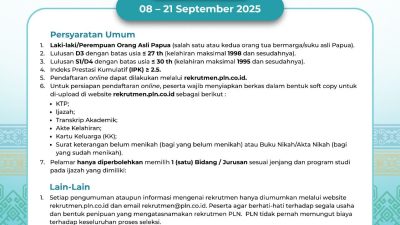 Oleh: Makawaru da Cunha I PAPUAINSIDE.ID, JAYAPURA—PT PLN (Persero) kembali membuka lowongan pekerjaan melalui program…