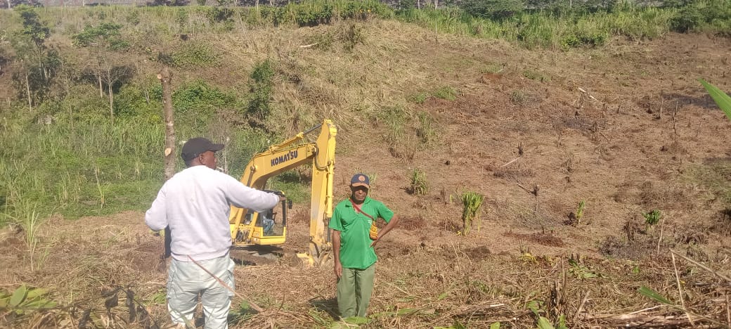 Andreas Yawalka mengawasi proses pembangunan stadion Andreas Ngilimol di Kampung Ngilimol Pegunungan Bintang. (foto: ist)