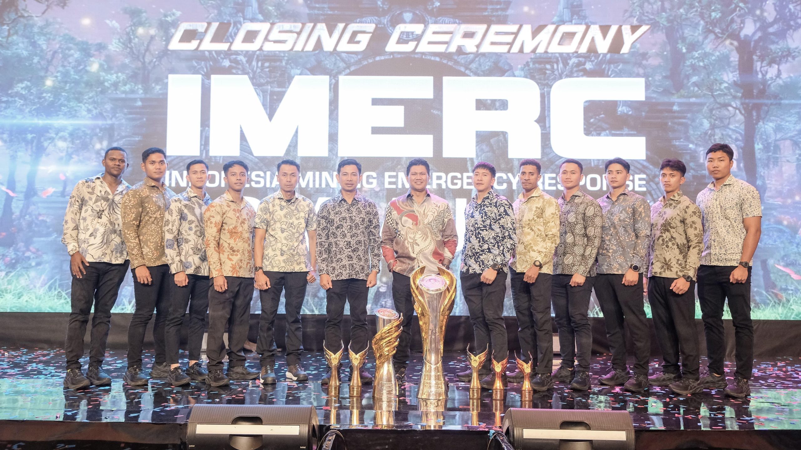 Tim Fire & Rescue PTFI di acara closing ceremony IMERC, menerima Piala Bergilir, 3 Piala Emas, dan 2 Piala Harapan pada sesi penutupan yang digelar di Kariangau Balikpapan. (foto: Corcom PT FI)