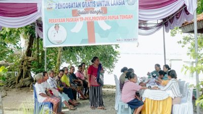 PAPUAinside.id, NABIRE—Tim Penggerak Pemberdayaan Kesejahteraan Keluarga (TP-PKK) Provinsi Papua Tengah berbagi kasih dengan ibu-ibu lanjut usia (lansia) dengan melakukan pemeriksaan kesehatan dan pengobatan gratis dan pemberian paket kasih.