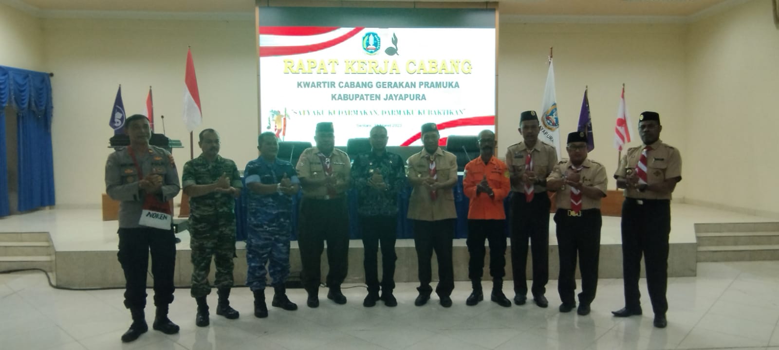 PAPUAinsde.id, SENTANI—Penjabat (Pj) Bupati Jayapura Triwarno Purnomo, resmi membuka Rapat Kerja Cabang (Rakercab) ke-28 Kwartir Cabang (Kwarcab) Gerakan Pramuka 2603 Jayapura tahun 2023 di Aula Lantai II Kantor Bupati Jayapura, Gunung Merah, Sentani, Kabupaten Jayapura, Jumat (31/3/2023).