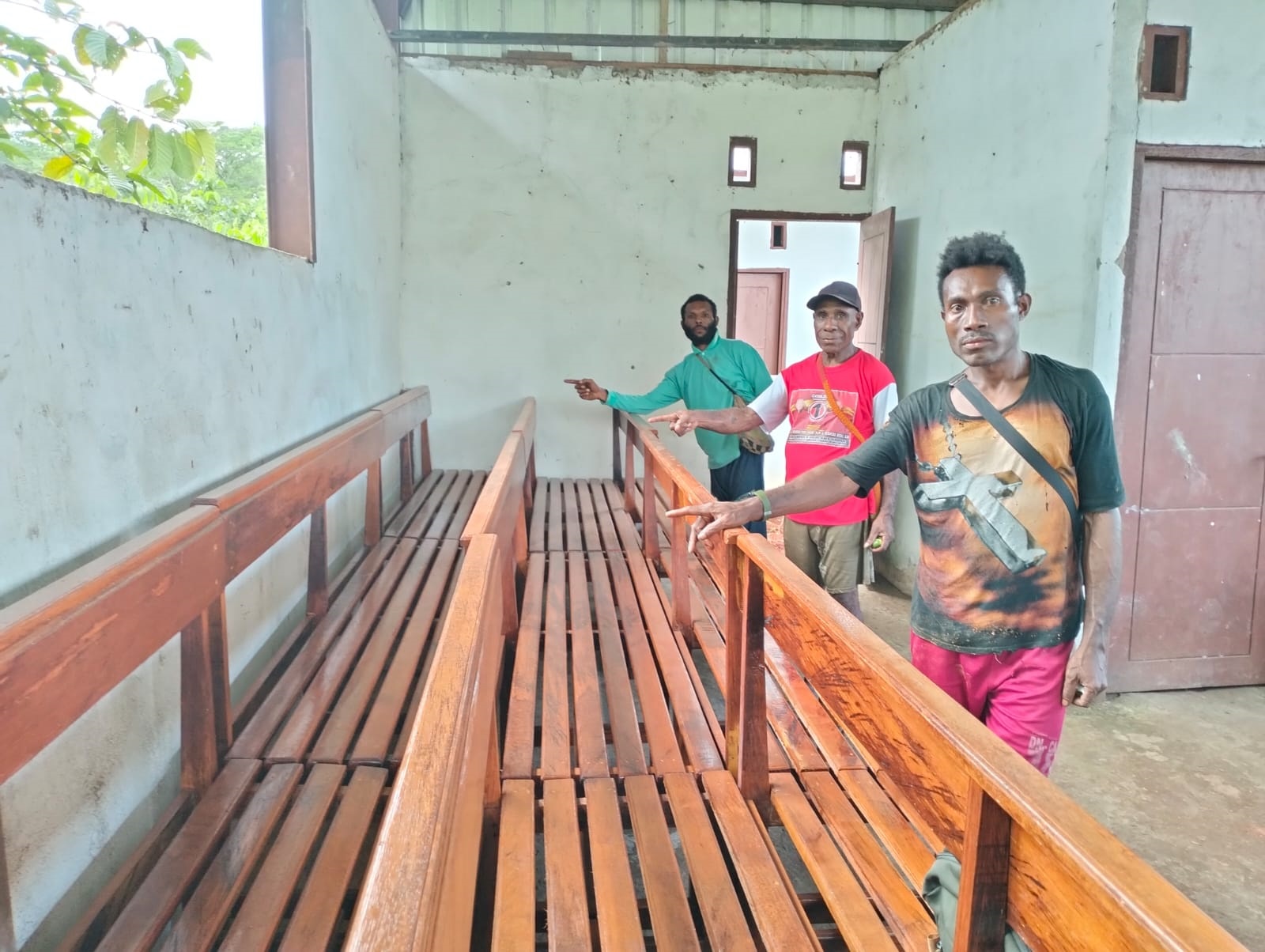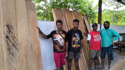 Turut hadir Koordinator Usaha Mebel Masyarakat Adat Koperasi “Kumea” Kampung Ampas, Urbanus Manggo, Koordinator The Samdhana Institute Papua Piter Roki Aloisius dan dua orang tukang Philipus Mofus dan Ernap Nof serta warga setempat.