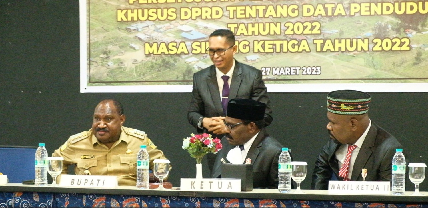 Sementara itu Bupati Puncak Willem Wandik,SE,M,Si menjelaskan persoalan data penduduk yang menjadi masalah sehingga dibentuk Pansus oleh DPRD, karena ada data yang dipindahkan ke daerah lain misalnya data di distrik A atau kampung A, dipindahkan ke distrik atau kampung lain, tentunya akan berpengaruh terhadap DPT dan juga berpengaruh kepada alokasi kursi DPRD nanti saat pemilihan legislatif 2024.