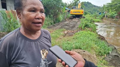 PAPUAinside.id, JAYAPURA—Rasa senang tak bisa disembunyikan warga Perumahan Organda, Distrik Heram setelah melihat alat berat diturunkan membersihkan saluran drainase di daerah itu.